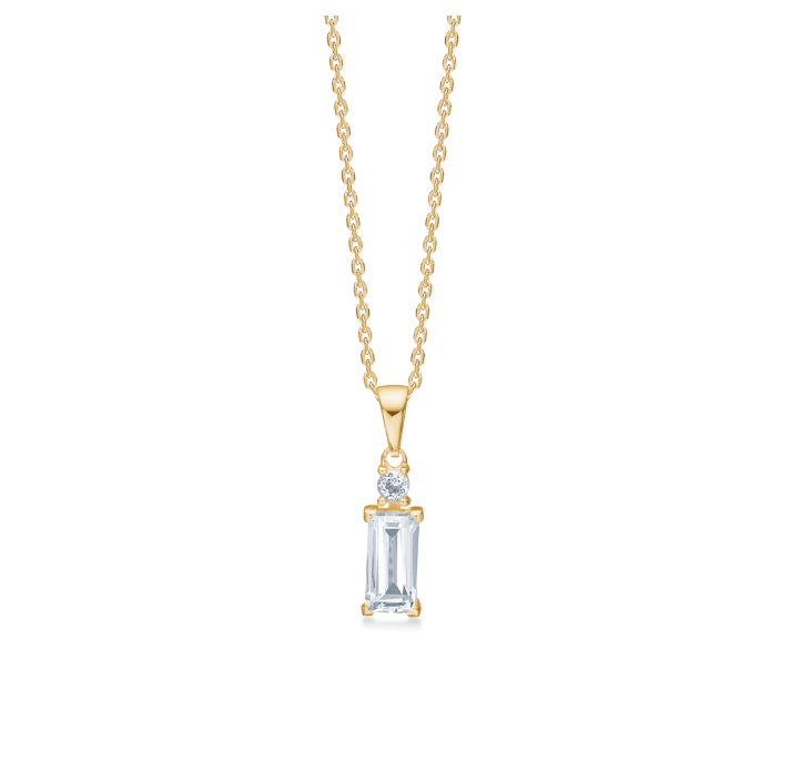 Den elegante halskæde har et tidløst vedhæng med rektangulær topas, der reflekterer lyset smukt. Et feminint og moderne design med et luksuriøst udtryk.