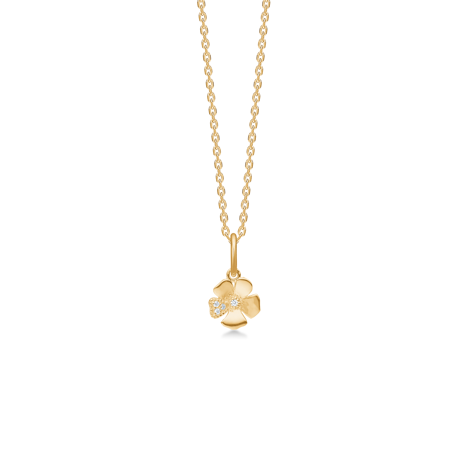 Fleur-vedhæng i 14 karat guld med 0.014 carat brillantslebne diamanter W.SI. Vedhænget måler 7 mm.