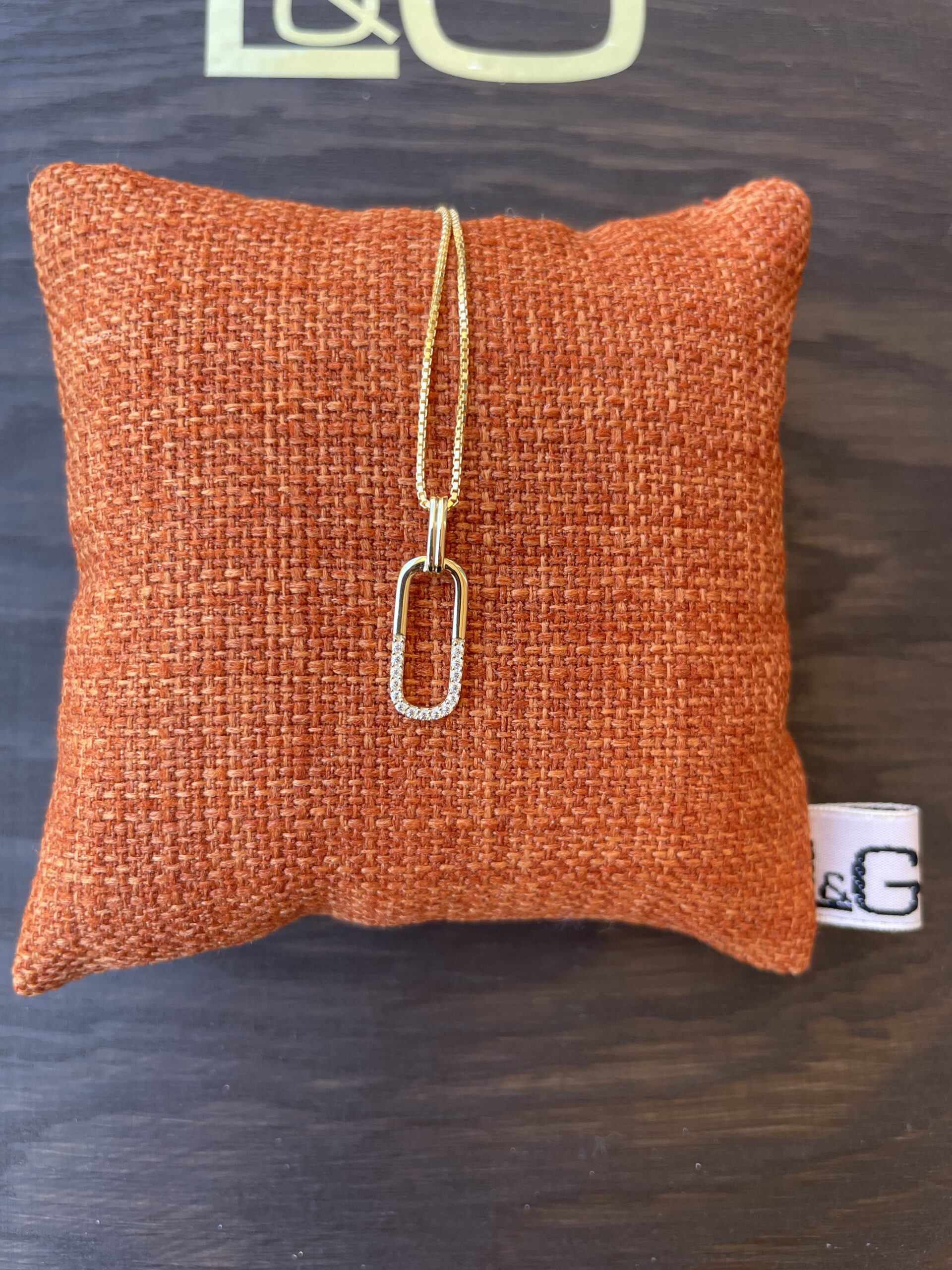 Vedhænget leveres med forgyldt kæde og kan bæres både til hverdag og ved særlige lejligheder.
