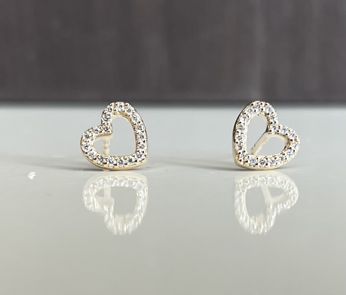 Ørestikker fra L&G udført i 14 kt. guld formet som åbne hjerter og besat med i alt 0,09 ct. brillantslebne diamanter i W/SI-kvalitet.