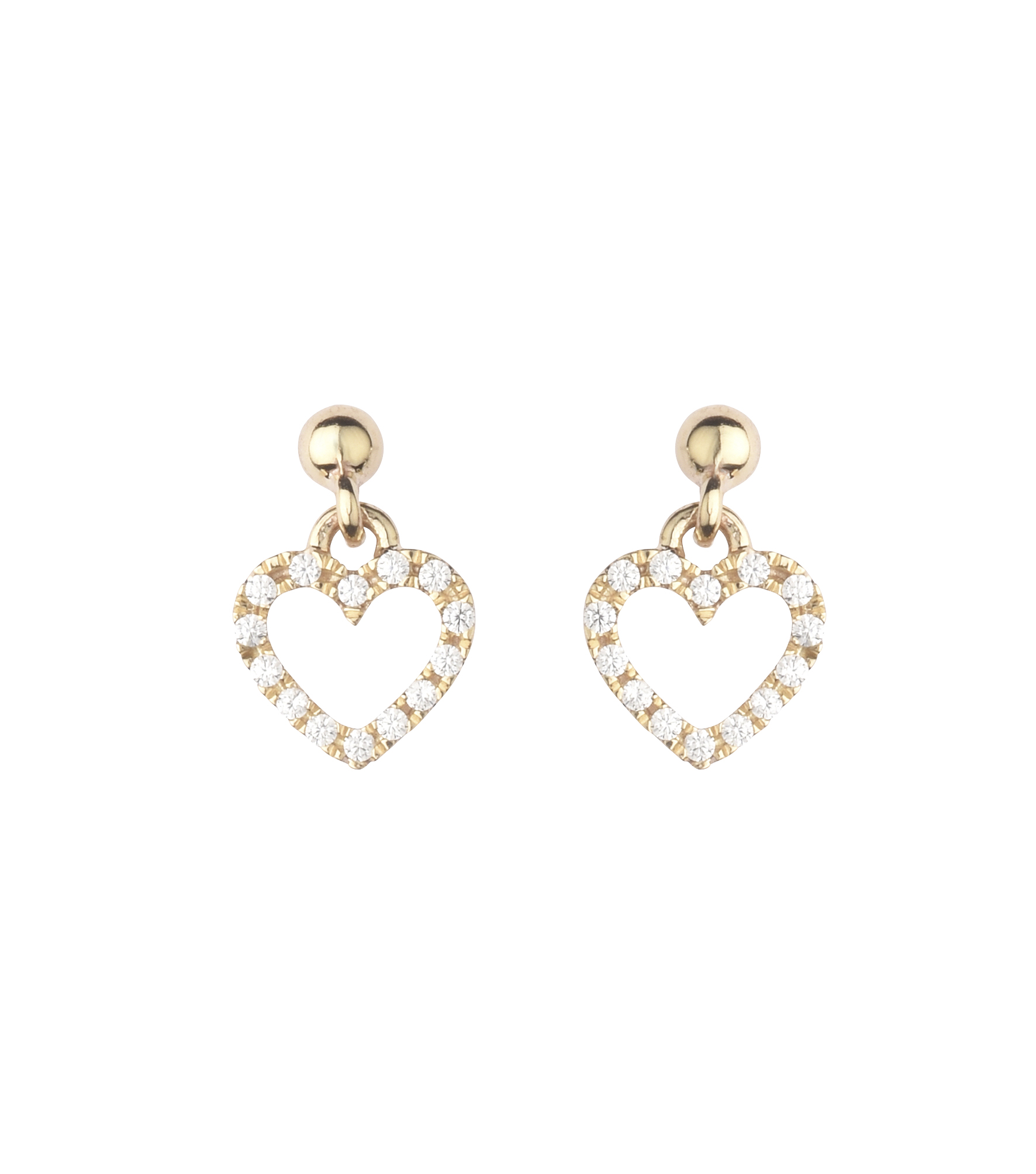 Øreringe fra L&G udført i 8 kt. rødguld formet som elegante hjerter og prydet med funklende zirkoner langs kanten.
