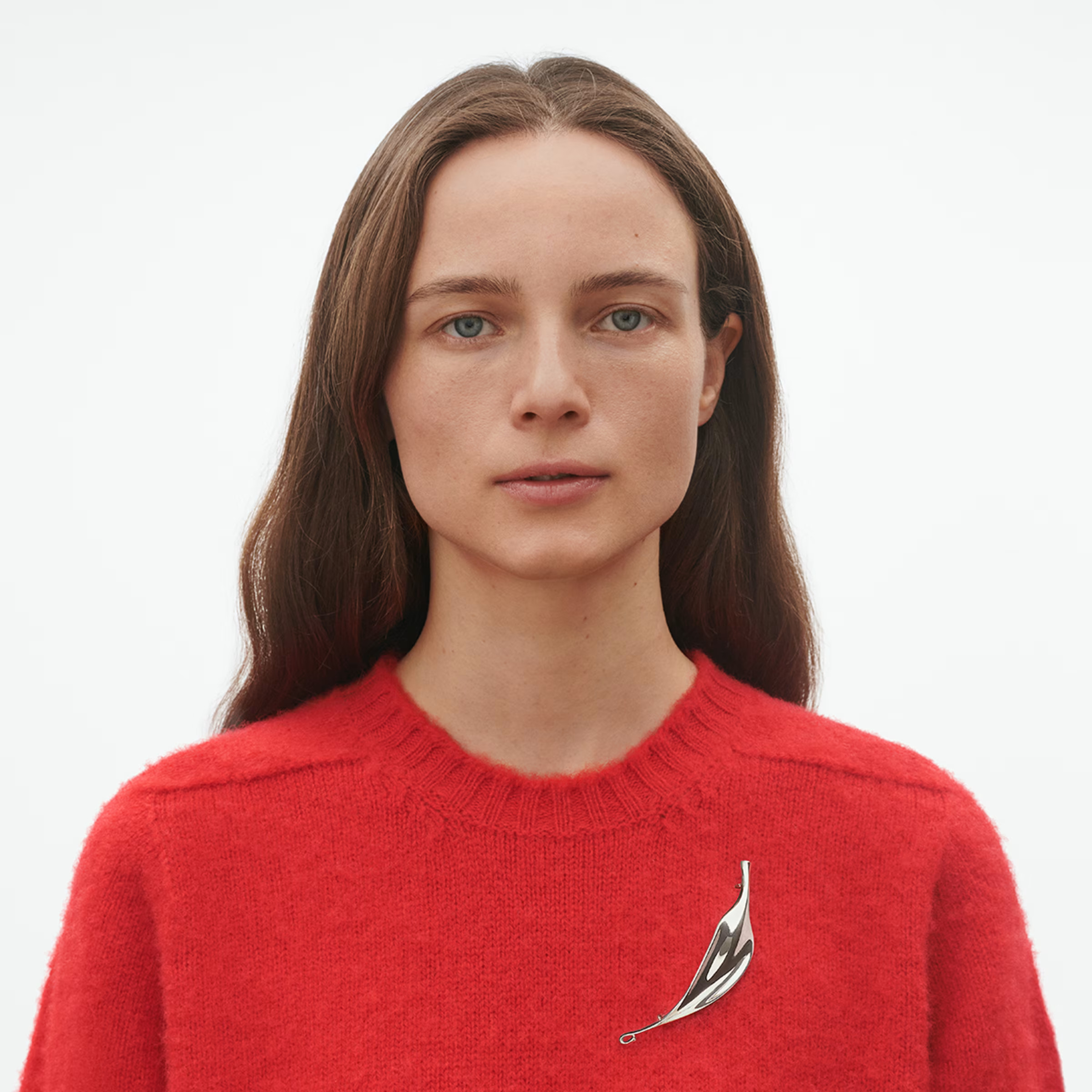 Brochen kan bæres på både strik, blazer eller kjole og tilfører et stilrent, nordisk præg – både til hverdag og ved særlige lejligheder.