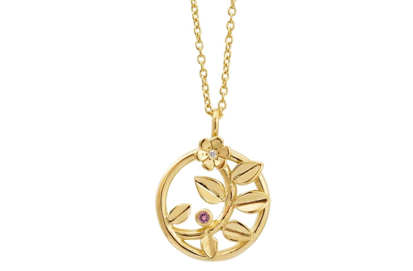 Rabinovich Leaf Vine Collier sølv forgyldt - Pink turmalin, blomst med Zirkonia