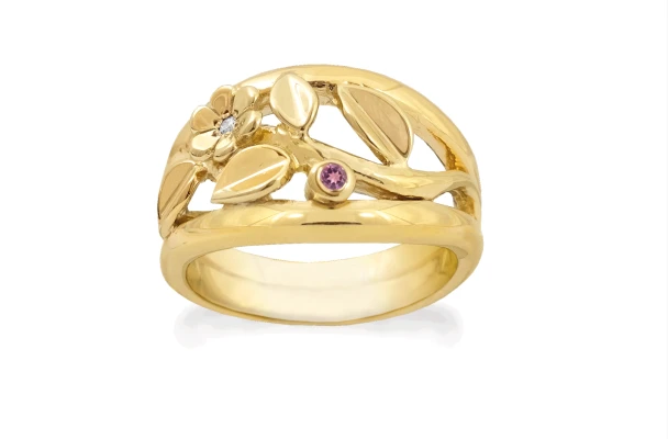 Oplev den fortryllende Rabinovich Dragonfly Ring i sølv forgyldt, prydet med en smuk pink turmalin og en blomst med zirkonia – perfekt til at tilføje et strejf af glamour til enhver stil.