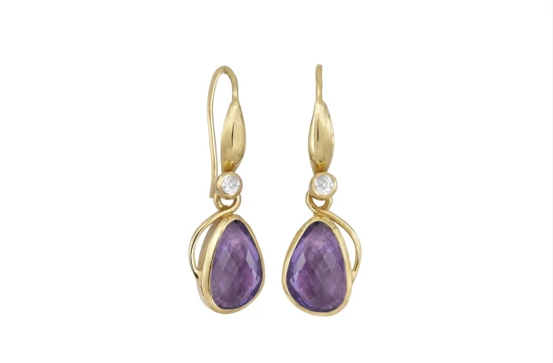 Oplev Rabinovich Breezy sølv forgyldte ørehængere, prydet med smukt facetteret ametyst og hvid topas. Skab elegance og lethed i dit look med dette unikke smykke!