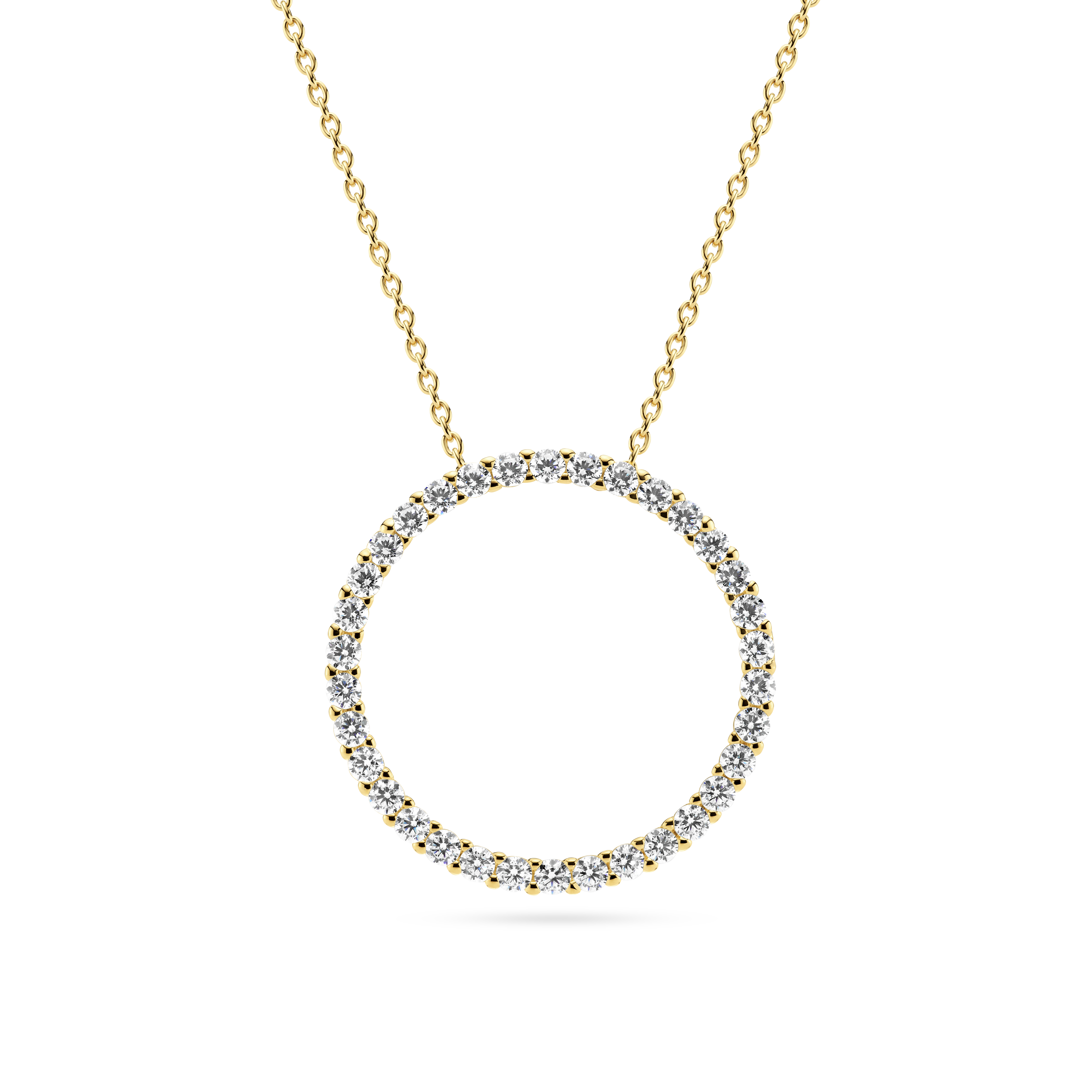 Biella Grande-halskæden fra Sif Jakobs Jewellery er fremstillet af 18 karat forgyldt sterlingsølv med blankpoleret overflade og facetslebne hvide zirkoner. Vedhængets mål: Diameter 23 mm. Kædens længde: 45-60 cm.