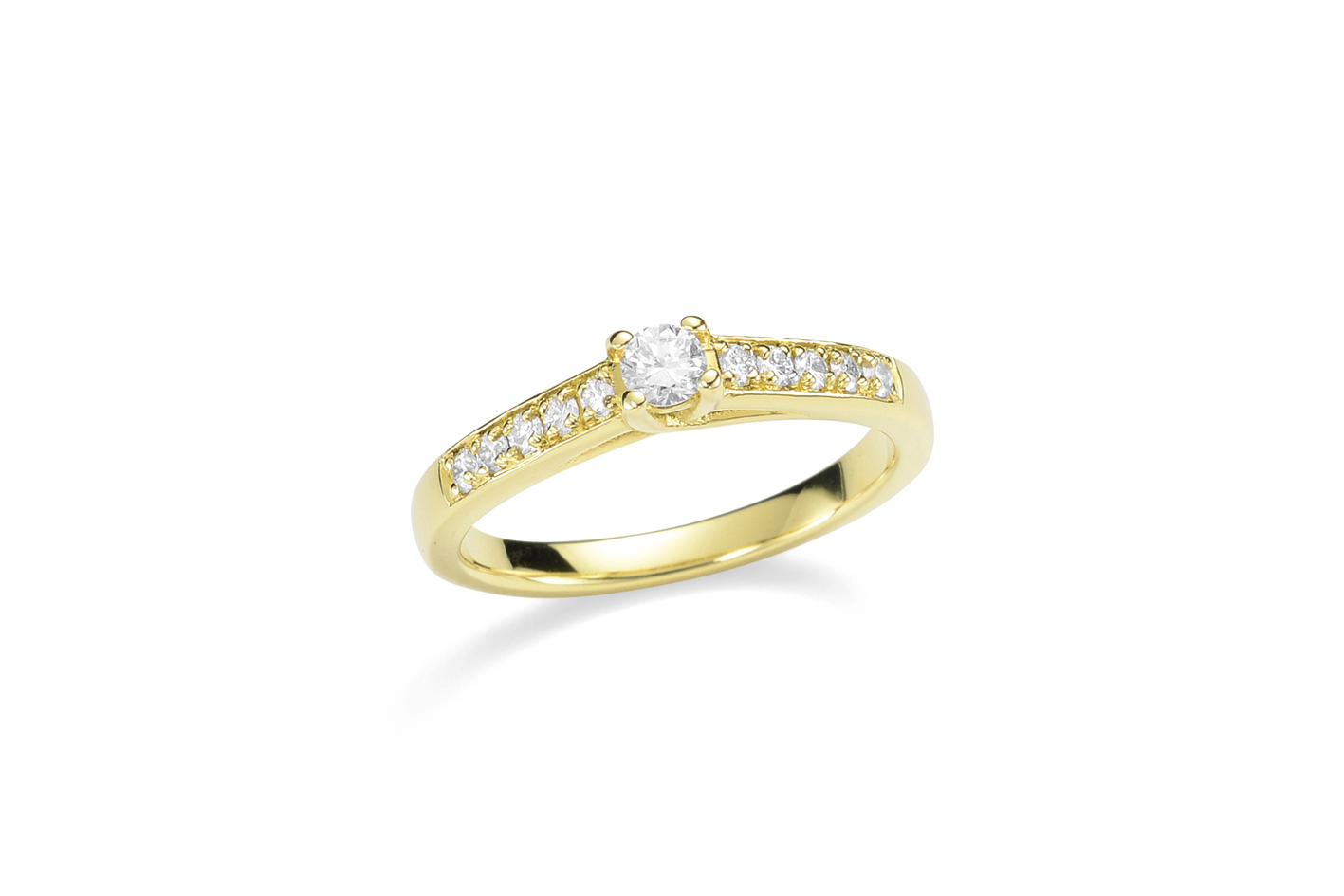 Oplev den tidløse skønhed fra Silhouette, en klassisk elegante brillant ring i 14 kt guld med 0,35 ct WSI. Denne ring stråler af luksus og raffinement, perfekt til at fejre livets særlige øjeblikke.
