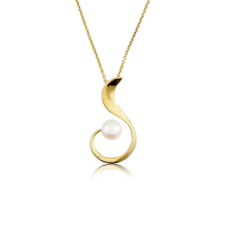 Vedhæng i forgyldt sølv med en smuk ferskvandsperle fra Blicher Fuglsang.