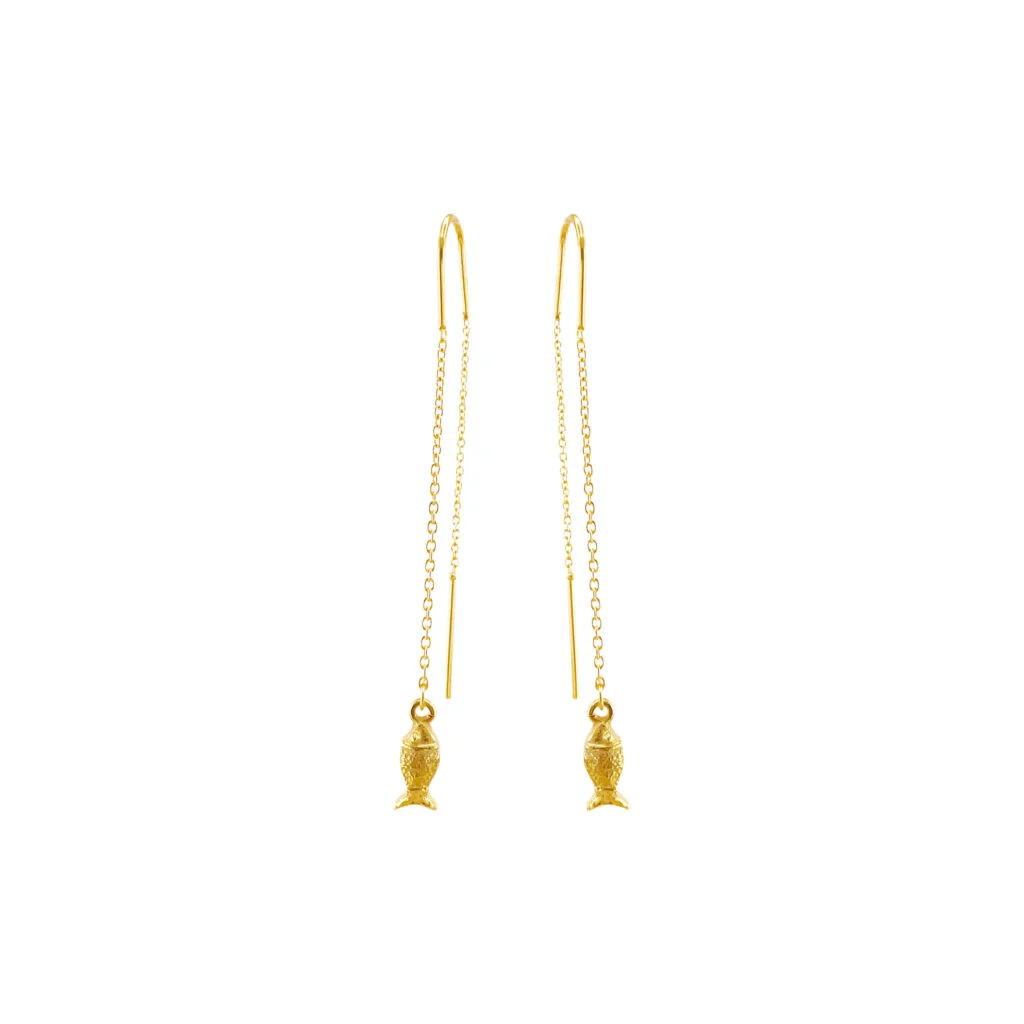 Fine og sjove ørekæder med små fisk fra Susanne Friis Bjørner. Fremstillet af forgyldt sterlingsølv.