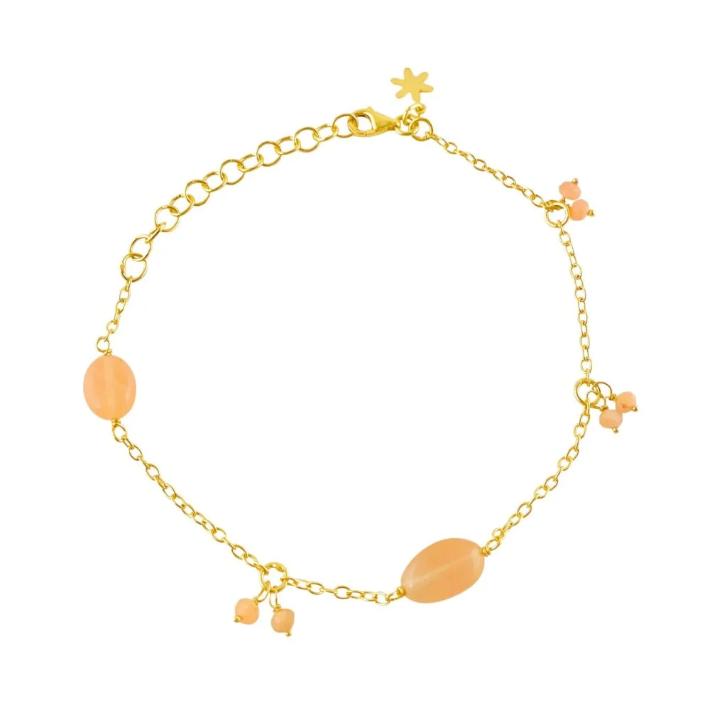 Ankerarmbånd fra Susanne Friis Bjørner fremstillet af forgyldt sterlingsølv med peach månesten.