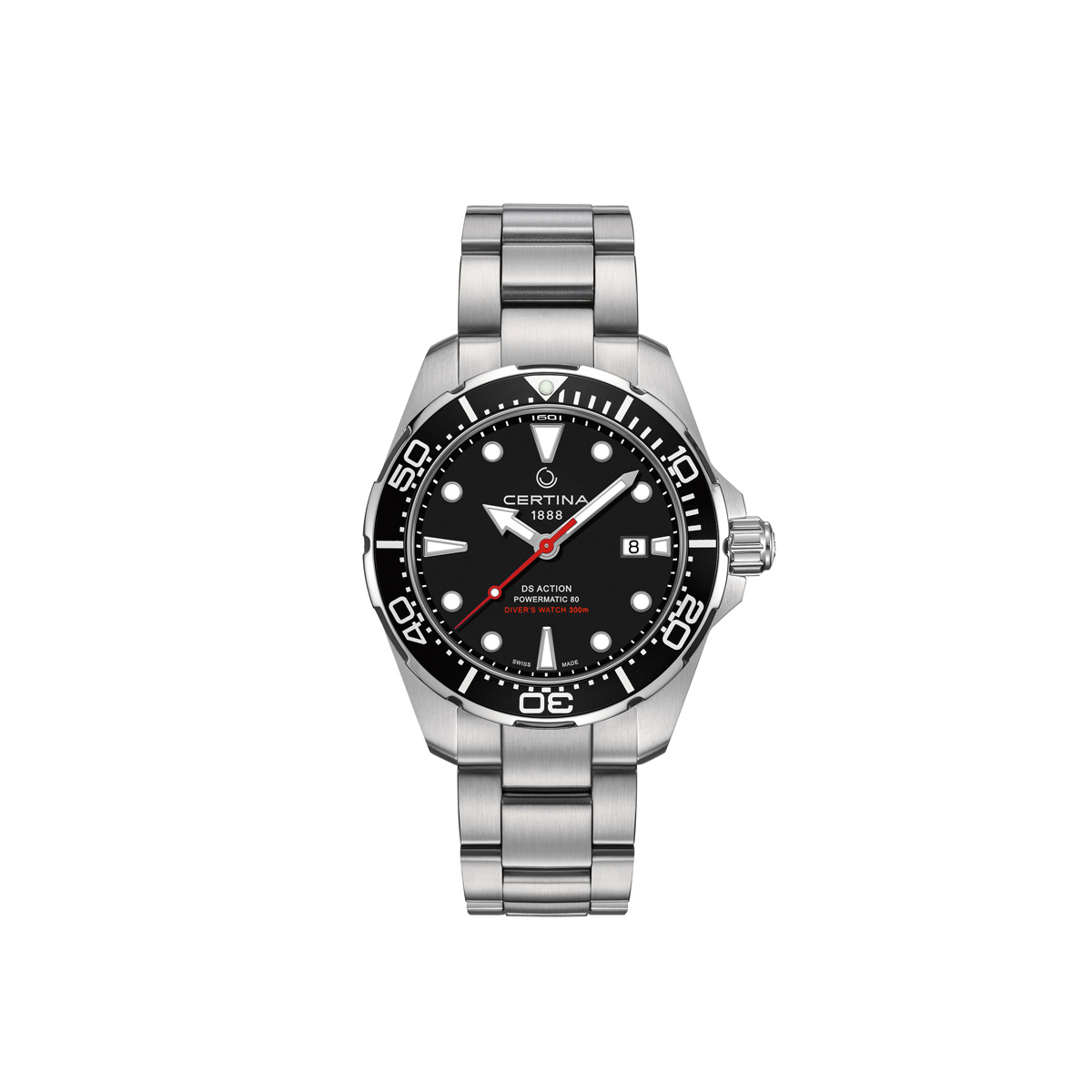 Sporty DS Action herre dykkerur (300 m) i stål med sort skive og lænke fra Certina.