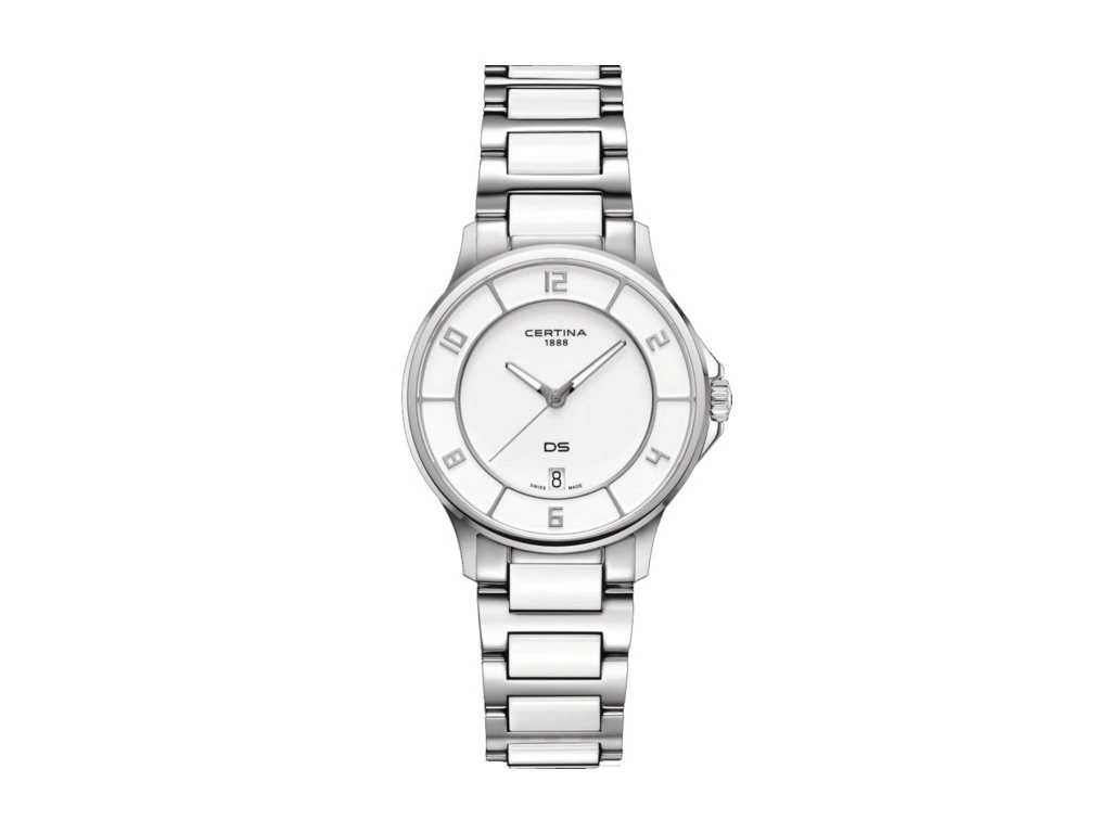 Smart DS dameur med hvid skive og lænke af keramik / stål fra Certina.