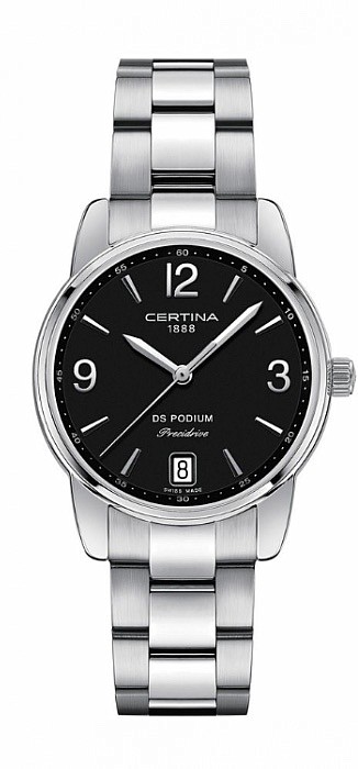 Enkelt DS Podium dameur med lænke og sort skive fra Certina.