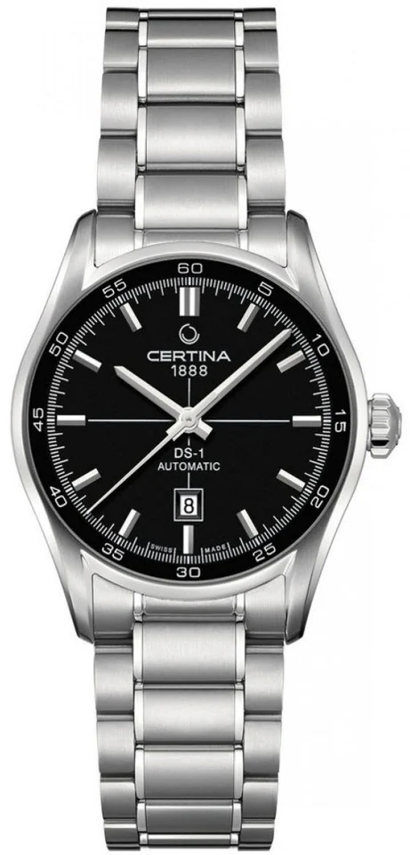 Stilrent DS-1 automatisk dameur med lænke og sort skive fra Certina.