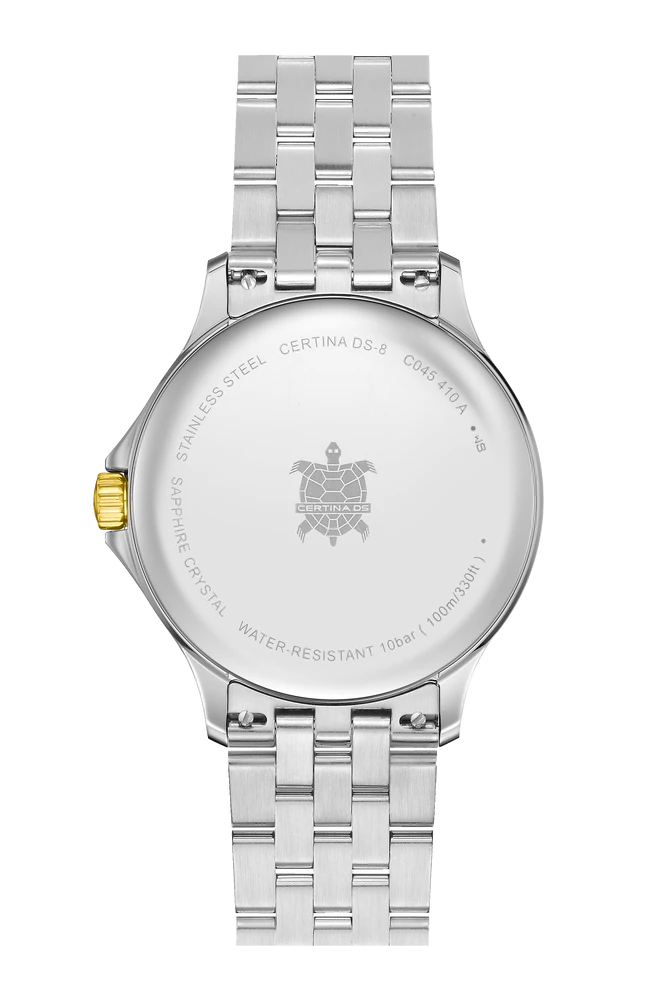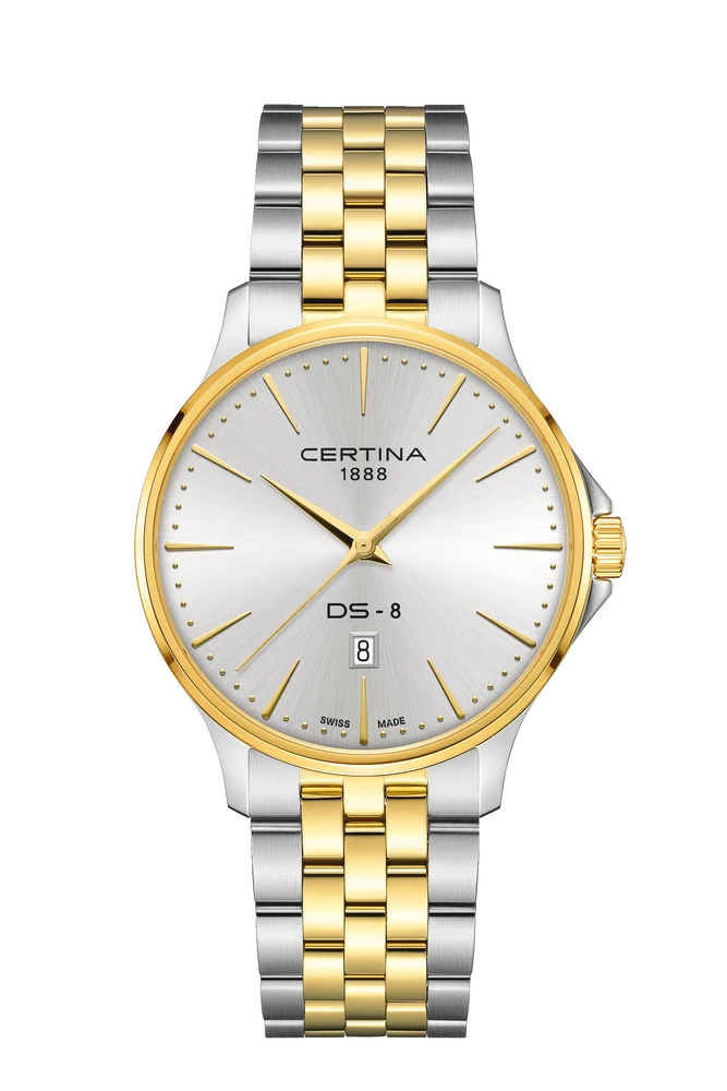 Elegant DS-8 Gent herreur i stål med sølvfarvet skive og tofarvet lænke fra Certina.