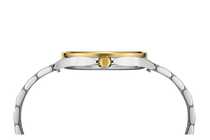 Uret er fremstillet i rustfrit 316L stål med PVD-belægning, sølvfarvet skive og safirglas med antirefleksbehandling.